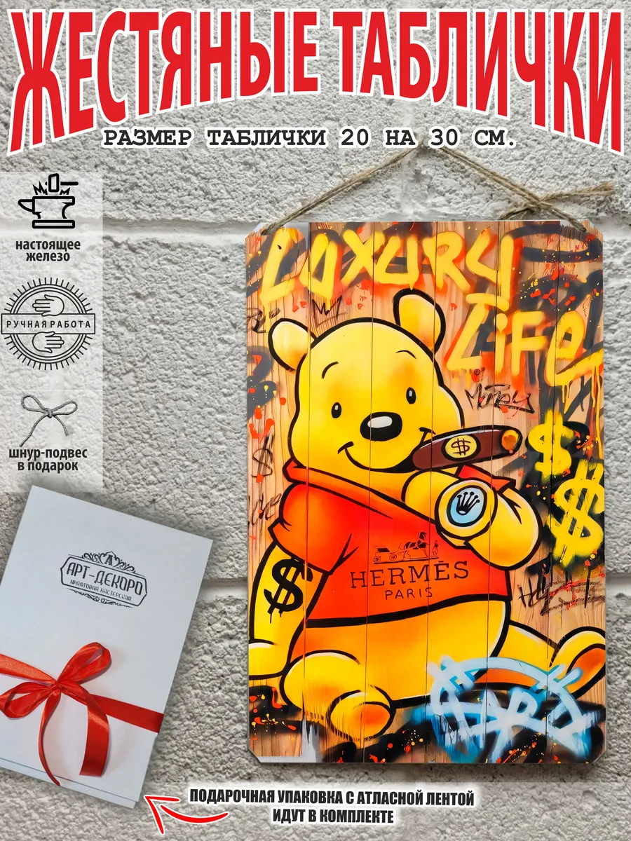Постер на металле Винни Пух граффити стрит-арт