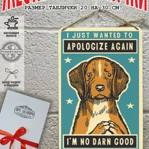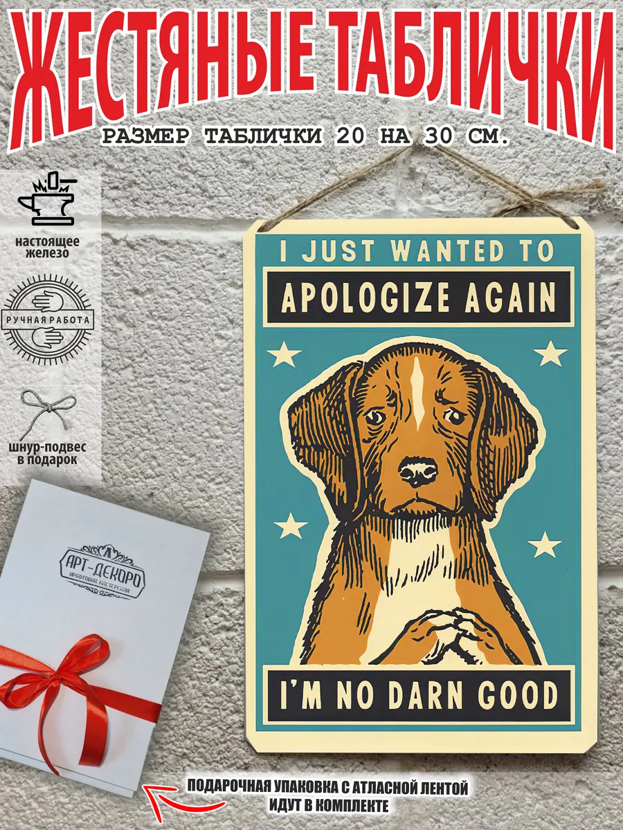 «Просто хотел еще раз извиниться — я чертовски плохой» — железная табличка бигль из 100% металла от нашего бренда будет прекрасным украшением для квартиры, дома, офиса, бара или кафе.