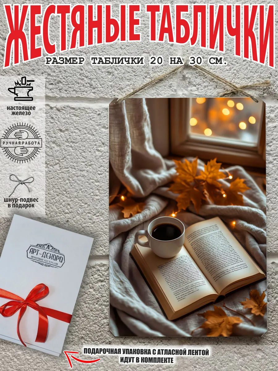 Металлическая табличка для интерьера кофе из 100% металла, размером 20 на 30 см. Если вы хотите порадовать своих себя или своих близких, то вам не придется думать над упаковкой, так как наши таблички кофе поставляются в подарочной упаковке с атласной лентой и открыткой. Это готовый недорогой подарок на все случаи жизни.