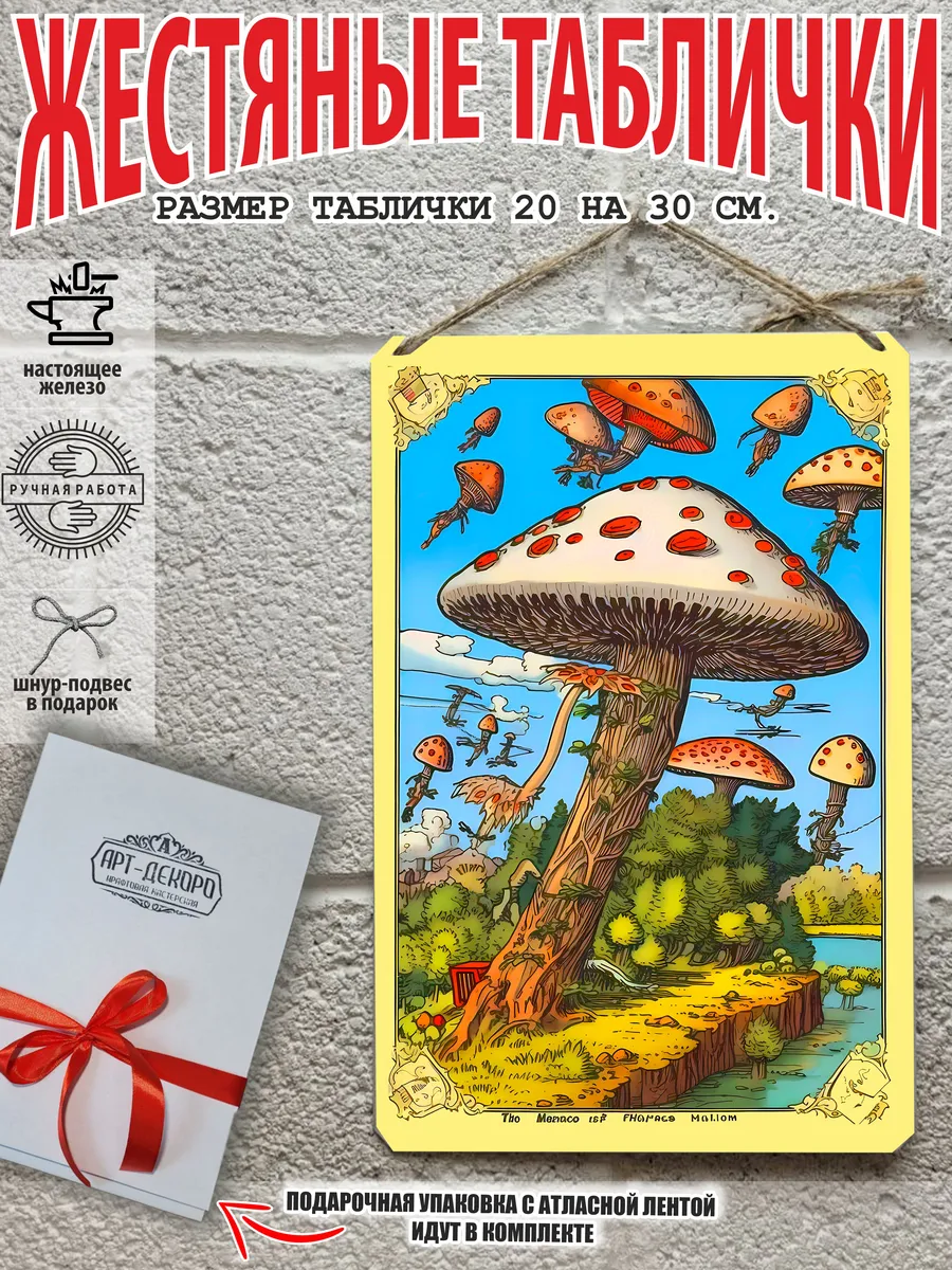 Представляем вам уникальную серию металлических картин, вдохновленных природой и ботаникой. В нашем ассортименте вы найдете великолепные постеры, такие как картина с мухоморами, картина белого гриба, а также картины грибы в лесу. Каждая интерьерная табличка выполнена из 100% металла, имеет классический размер 20×30 см и отличается высокой прочностью и долговечностью.