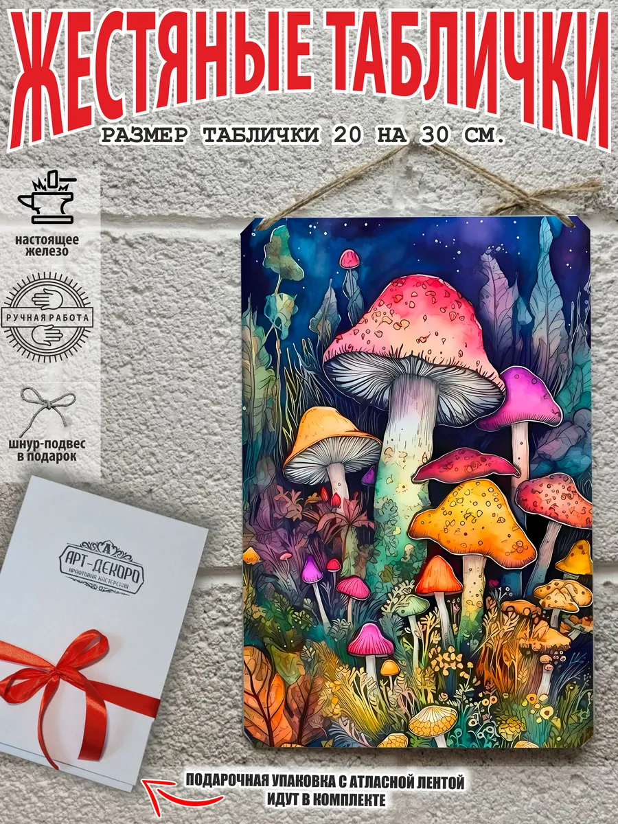 Представляем вам уникальную серию металлических картин, вдохновленных природой и ботаникой. В нашем ассортименте вы найдете великолепные постеры, такие как картина с мухоморами, картина белого гриба, а также картины грибы в лесу. Каждая интерьерная табличка выполнена из 100% металла, имеет классический размер 20×30 см и отличается высокой прочностью и долговечностью.