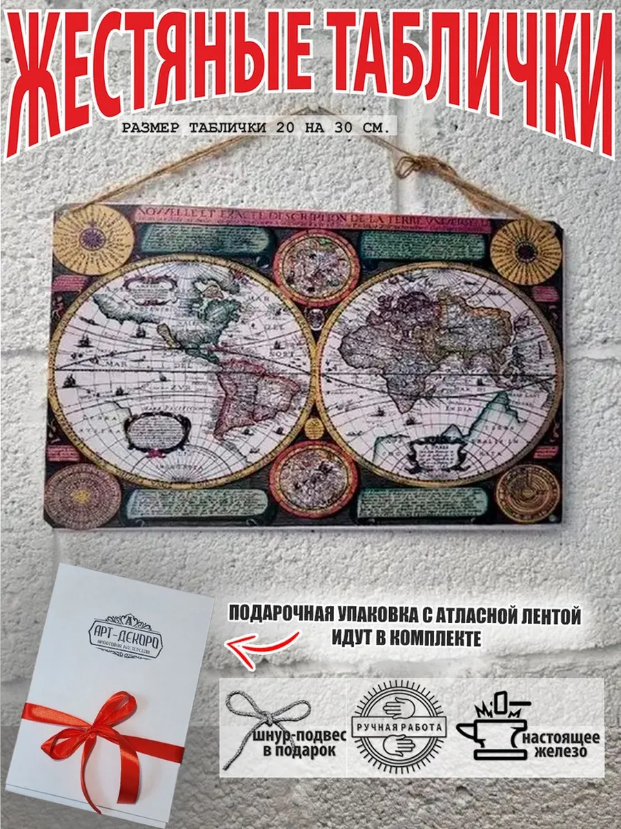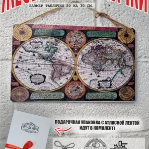 Ретро-стильная декоративная табличка «Карта мира» выполнена из прочного металла. Компактные размеры идеально впишутся в любую комнату, а шнур-подвес обеспечит легкий монтаж. Продукт сочетает минималистичный дизайн и надежность, сохраняя эстетику на протяжении десятилетий.