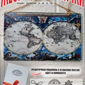 Ретро-стильная декоративная табличка «Карта мира» выполнена из прочного металла. Компактные размеры идеально впишутся в любую комнату, а шнур-подвес обеспечит легкий монтаж. Продукт сочетает минималистичный дизайн и надежность, сохраняя эстетику на протяжении десятилетий.