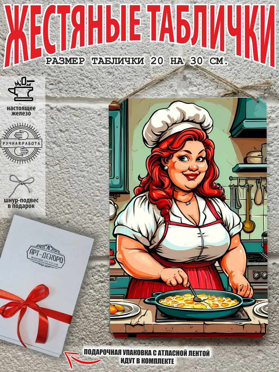 Мы рады представить вам уникальную серию металлических табличек с изображениями веселого повара и шеф-повара, которые отлично подойдут для вашей кухни. Эти стильные экземпляры, выполненные из 100% металла, имеют классический размер 20×30 см и идеально впишутся в любой интерьер, будь то кухня, гостиная, офис или кафе.