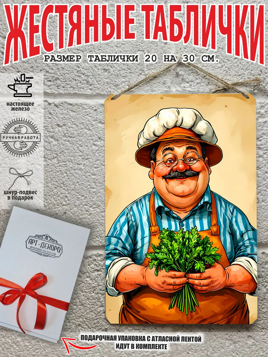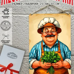 Мы рады представить вам уникальную серию металлических табличек с изображениями веселого повара и шеф-повара, которые отлично подойдут для вашей кухни. Эти стильные экземпляры, выполненные из 100% металла, имеют классический размер 20×30 см и идеально впишутся в любой интерьер, будь то кухня, гостиная, офис или кафе.