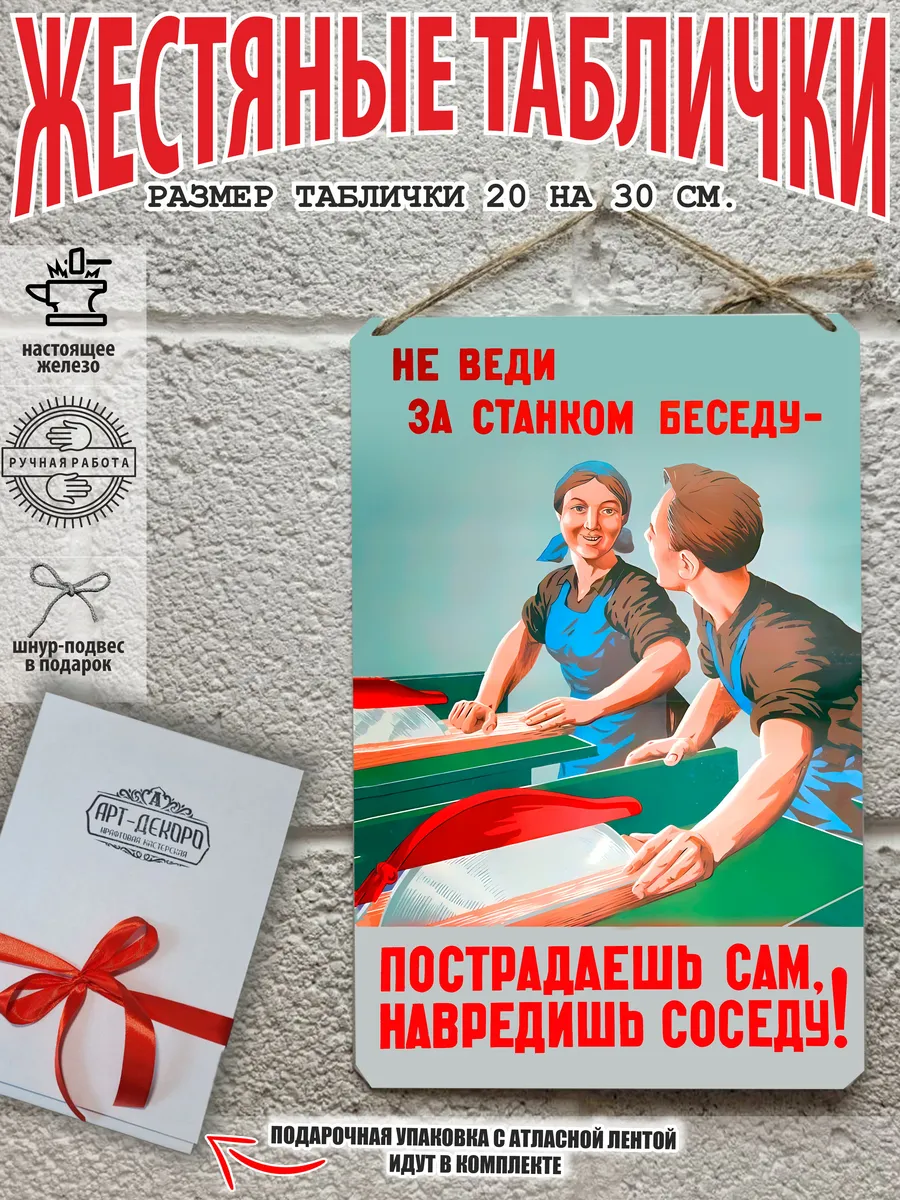 — Легкость в уходе: наши картины, жестяные таблички и постеры, включая плакаты в стиле СССР, советские постеры, и советские картины, легко моются и не боятся влаги, что позволяет использовать их как внутри, так и на улице.