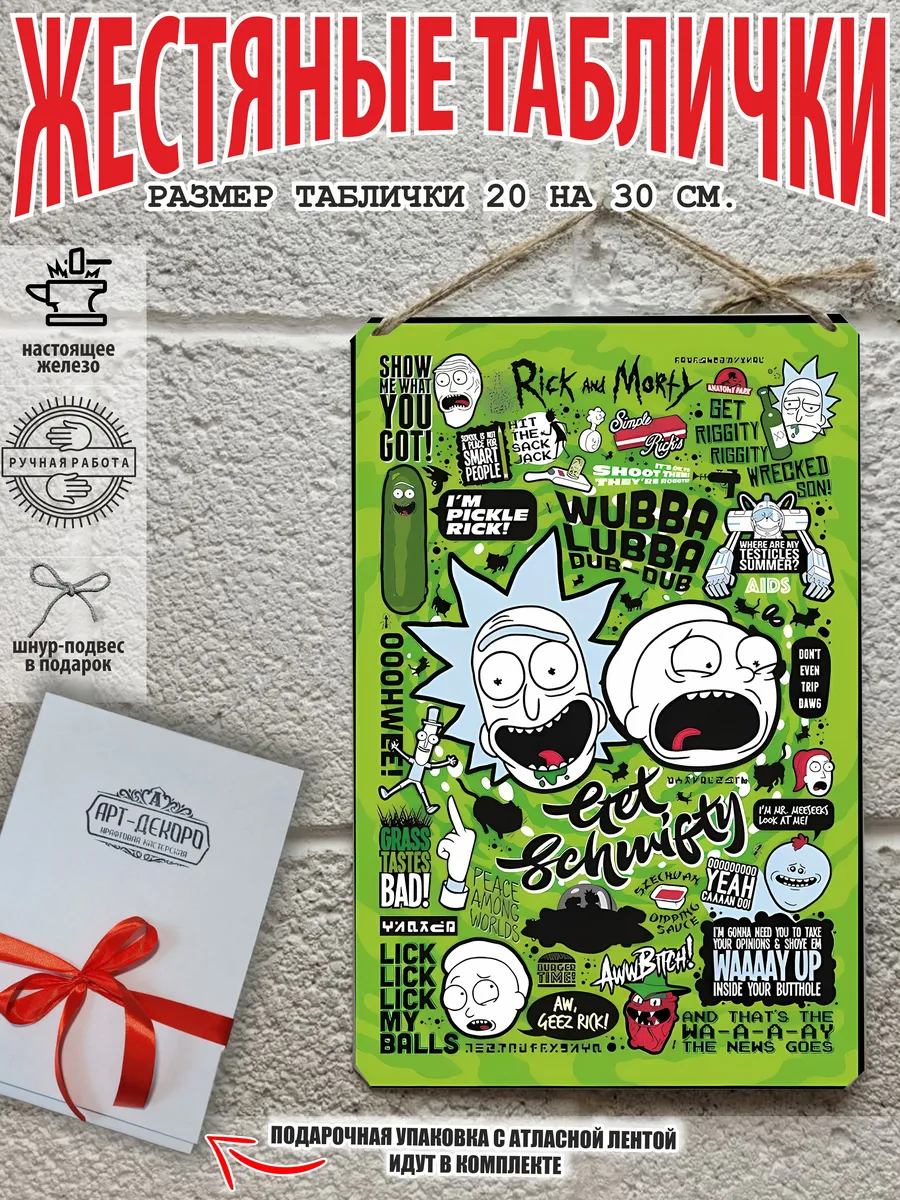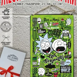 Рик и Морти — американский комедийный научно-фантастический анимационный сериал для взрослых, созданный Джастином Ройландом и Дэном Хармоном и выпускаемый в рамках блока Adult Swim на телеканале Cartoon Network. В центре сюжета — школьник по имени Морти и его дедушка Рик Представляем вам стильные и эффектные жестяные таблички с изображением Южный парк. Наши постеры — жестяные таблички Futurama футурама, выполнены из металла, который отличается высоким качеством и долговечностью. Размер 20×30 см позволяет легко вписать наши картины в любой интерьер, будь то кухня, гостиная, офис или кафе. Почему стоит выбрать наш постер для интерьера? Яркие и насыщенные краски наносятся прямо на металл не выгорают на солнце и делают ваше пространство выразительным и уникальным. Легкость в уходе: наши картины для интерьера, таблички на дверь и постеры на стену можно легко мыть. Они не боятся влаги, что позволяет использовать их как в помещениях, так и на улице. Удобные варианты крепления: табличка рики и морти может быть установлена на саморезы, гвозди, кнопки, клейкую ленту, магниты или повешена на шнур из натурального джута, который идет в комплекте. Упаковка: каждая табличка южный парк аккуратно упакована в защитный пакет и дополнительно завернута в эко-картон, а также дополнительно в комплекте идет подарочная упаковка, атласная лента и открытка — что делает её отличным подарком на любой случай – от дня рождения до новоселья – готовый подарок. Мы гордимся тем, что предлагаем более 15 000 уникальных дизайнов, включая постеры на стену для интерьера, постер на заказ и прикольные металлические таблички, чтобы каждый мог найти что-то для себя. Наши постеры разделены на коллекции разных серий, что позволяет заказать несколько табличек в едином стиле и создать неповторимую композицию у вас дома, не упустите возможность сделать свой дом стильным – добавляйте товары в избранное, чтобы первыми узнавать о скидках и новинках! Создайте атмосферу уюта и стиля с нашими металлическими картинами и постерами для интерьера уже сегодня!