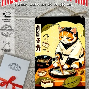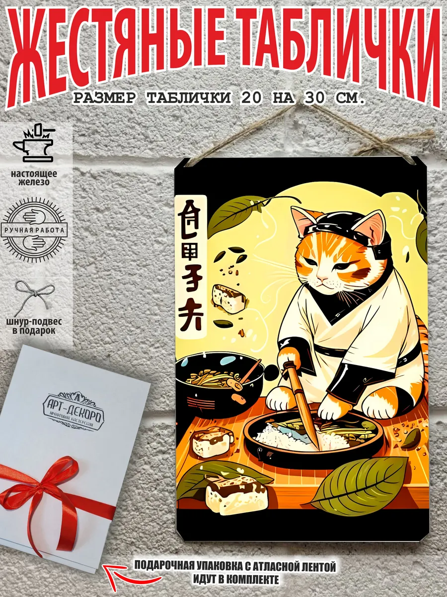 Кот и суши взрывные котята кот батон котофей басик кот рыжий кот коты воители – признанные любимцы взрослых и детей. Железная табличка кухня в японском стиле картина суши из 100% металла от нашего бренда будет прекрасным украшением для квартиры, дома, офиса, бара или кафе. Сочетая в себе эстетику и прочность японский стиль — декоративная металлическая табличка выгляди более стильно чем наклейки коты картины по номерам коты стикеры и является непременным элементом декора как для внутренних помещений, так и для уличных зон. Выберите из нашего широкого ассортимента аксессуар, который подойдет именно вам. Жестяная табличка Арт-Декоро это дом в японском стиле, она крепится на саморезы, шурупы или на специальный шнур из натурального джута который идет в комплекте с каждым заказом как бесплатный подарок, что позволяет разнообразить способы использования. Вы можете повесить на стену в гостиной, спальне, кухне или на улице, чтобы создать атмосферу, которая отражает индивидуальность. Таблички можно мыть, они не выцветают долгие годы. Картина открытки постер плакат коты питерские парижские коты все это сочетается в наших изделиях. У нас представлены картины коты которые создала нейросеть. Мы гордимся тем, что каждая табличка изготовлена из настоящего металла, краска наносится прямо на железо. Это гарантирует ее долговечность и надежность. Красивая и изысканная отделка обеспечивает эффектный внешний вид и придает обстановке особое очарование. Подарите возможность добавить изюминку в интерьер и превратите пространство в уникальное, а также уютное место, которое будет отличаться от всех остальных. В нашем магазине Вы найдёте большой выбор декора интерьера и создадите превосходную обстановку.