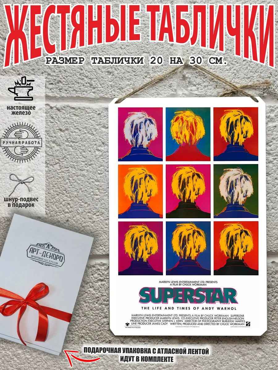 Преобразите ваш интерьер с нашими уникальными жестяными табличками и постерами, созданными для истинных поклонников искусства! В нашем ассортименте вы найдете вдохновленные поп-артом работы, такие как постер Энди Уорхол, включая картины Энди Уорхола и известные постеры с Мэрилин. Каждая табличка, выполненная из прочного металла и имеющая размер 20×30 см, идеально впишется в любой интерьер — будь то кухня, гостиная, офис или кафе.