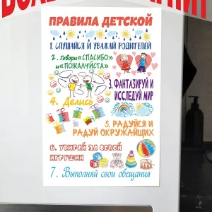Только наши большие магниты можно мыть, они не выцветают долгие годы. Магнит плакаты правила семьи, основные семейные правила, прикольные надписи на магнитах — все это сочетается в наших изделиях. Мы гордимся тем, что изображение наносится прямо на магнит — это новая технология. Это не наклейка, что гарантирует ее долговечность и надежность, при этом магнит можно всегда снять, он не оставляет следов.