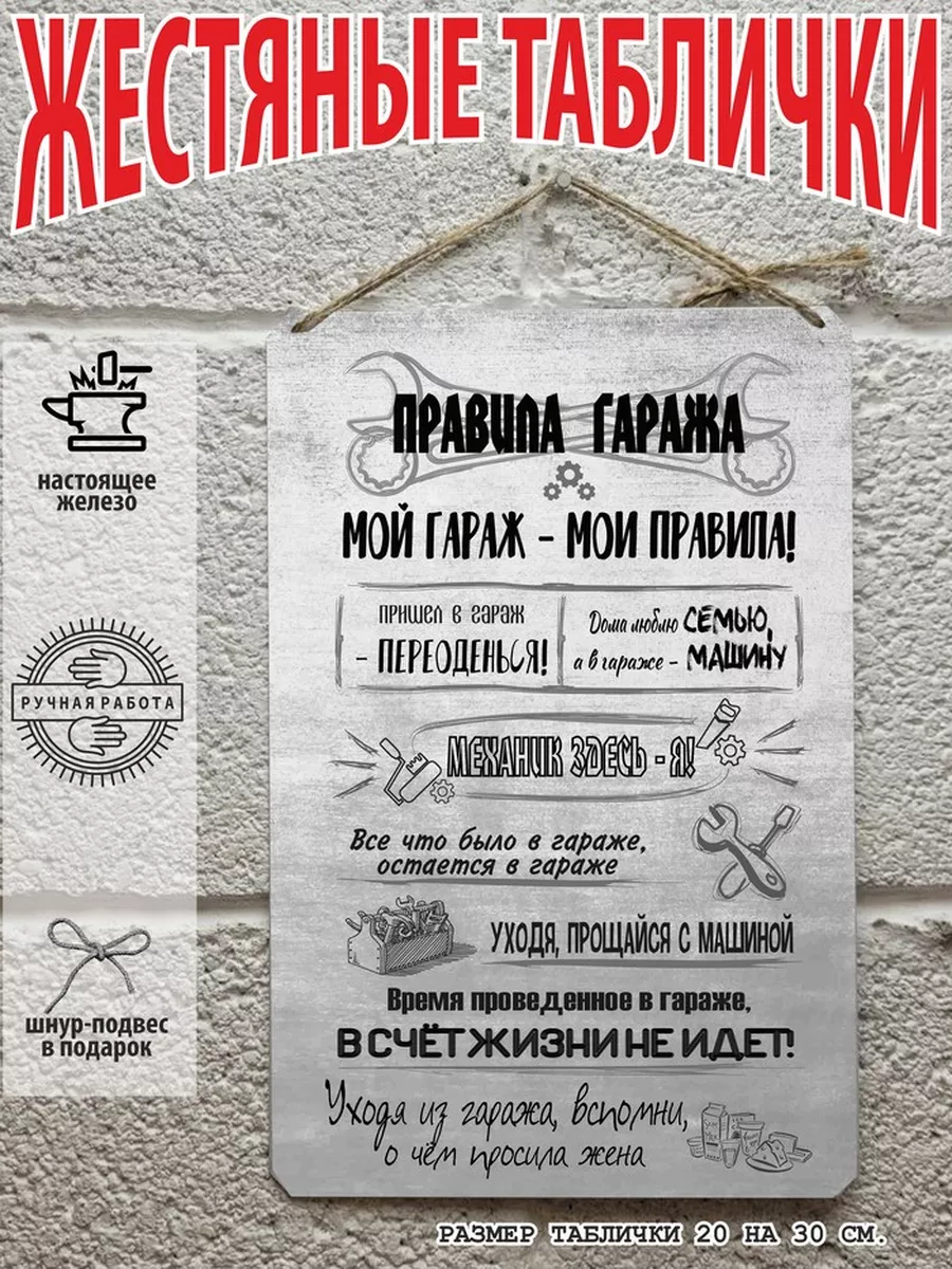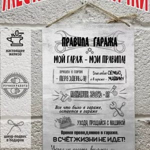 правила гаража табличка металлическая
