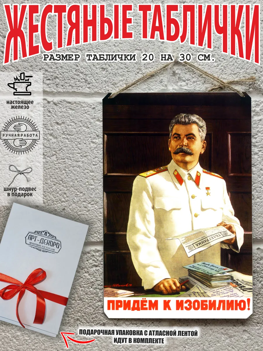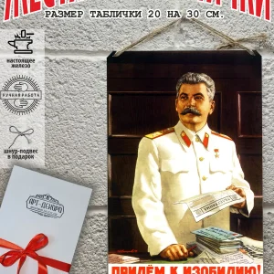 СССР Железная жестяная табличка ручной работы, выполнена из 100% металла имеет классический размер 20*30 см. Края загнуты на 5 мм внутрь. Изображение наносится прямо на металл. Яркие насыщенные и объемные цвета. Можно использовать как в помещении, так и на улице она не боится влаги. Варианты крепления : на саморезы-шурупы, по углам имеются отверстия или на шнур-подвес из натурального джута, который идёт в подарок. Сделано в России. Упакована в прозрачный открывающийся пакет для защиты от царапин при транспортировке. Внешняя дополнительная эко-упаковка из картона, подходит для подарка. Плакат советский — отличный подарок и стильный декор любого интерьера. Сувенир советская агитация — хороший презент. Картинка советская пропаганда — это отличный декор любого интерьера. Табличка на стену портрет Сталин Ленин — украшение кухни, дома, офиса, кафе, кофейни. Картина советский союз этот ретро стиль который всегда в моде. Подарок начальнику, другу, винтажный ретро советский постер на жести. Декоративная жесть это картина для квартиры и дачи. Вся коллекция табличек с тематикой советские плакаты в нашем профиле в бренде СССР. Так же в нашем магазине более 15 000 видов табличек из разный коллекций, каждый найдет себе по душе! Добавляйте товар в избранное, что бы первыми узнавать о скидках и новинках.