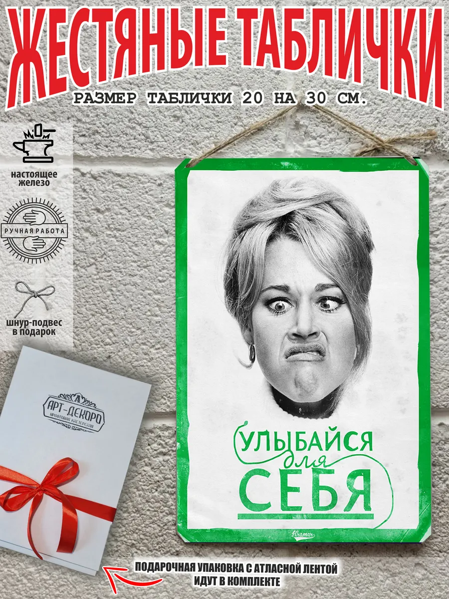 Обратите внимание! У нас все таблички идут сериями, можно создать отличную композицию в одном стиле. Кроме того, таблички это стильный и недорогой подарок по любому поводу. Прикольные штуки железная табличка картинки мотиваторы позитивные и демотиваторы из 100% металла от нашего бренда будет прекрасным украшением для квартиры, дома, офиса, бара или кафе. Мотивация это прикол, часть нашей жизни, картина мотиватор всегда улучшает настроение. Сочетая в себе эстетику и прочность, декоративная металлические мотивационные карточки являются непременным элементом декора как для внутренних помещений, так и для уличных зон. Выберите из нашего широкого ассортимента аксессуар, который подойдет именно вам. Жестяная табличка Арт-Декоро крепится на саморезы, шурупы или на специальный шнур из натурального джута который идет в комплекте с каждым заказом как бесплатный подарок, что позволяет разнообразить способы использования. Плакаты с приколами можно повесить на стену в гостиной, спальне, кухне или на улице, чтобы создать атмосферу, которая отражает индивидуальность. Таблички можно мыть, они не выцветают долгие годы. Картина открытки постер плакат стикеры наклейки приколы мотивация все это сочетается в наших изделиях. Мы гордимся тем, что каждое изделие изготовлено из настоящего металла, краска наносится прямо на железо. Это гарантирует ее долговечность и надежность. Красивая и изысканная отделка обеспечивает эффектный внешний вид и придает обстановке особое очарование. Подарите возможность добавить изюминку в интерьер и превратите пространство в уникальное, а также уютное место, которое будет отличаться от всех остальных. В нашем магазине Вы найдёте большой выбор декора интерьера и создадите превосходную обстановку.