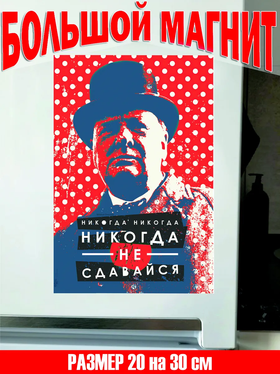 Шрифтовой плакат «Никогда не сдавайся» с изображением Уинстона Черчилля станет отличным дополнением к любому интерьеру. Этот стильный магнит из винила не только украсит ваш холодильник, металлическую дверь или стиральную машину, но и будет напоминать вам о силе духа и целеустремленности. Магнит упакован в прозрачную пленку и картонную эко-упаковку, что делает его прекрасным подарком для друзей, родственников или коллег на день рождения, новоселье или Новый год.