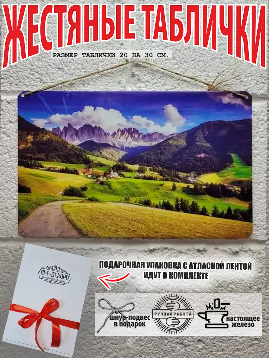 Железная табличка природа из 100% металла от нашего бренда Арт-Декоро будет прекрасным украшением для квартиры, дома, офиса, бара или кафе. Сочетая в себе эстетику и прочность, декоративная металлическая табличка является непременным элементом декора как внутренних помещений, так и уличных зон. Выберите из нашего широкого ассортимента ландшафтный аксессуар, который подойдет именно вам. Наши изделия дикая природа, фото природы порадуют не только взрослых, но и детей.Жестяная табличка Арт-декоро мир природы, nature крепится на саморезы, шурупы или специальный шнур из натурального джута, который идёт в комплекте с каждым заказом как бесплатный подарок. Всё это позволяет разнообразить способы использования. Вы можете повесить табличку берег моря, песчаный пляж, фото заката, водопады мира, водоем, вода в природе, горы, горный и городской ландшафт на стену в гостиной, спальне, кухне, а также на улице, чтобы создать атмосферу, которая отражает вашу индивидуальность. Таблички можно мыть, они не выцветают долгие годы. Мы гордимся тем, что каждая табличка изготовлена из металла и краска наносится прямо на железо. Это гарантирует ее долговечность и надежность. Красивая и изысканная отделка обеспечивает эффектный внешний вид и придает обстановке особое очарование. На наших табличках представлена самая красивая живая и неживая природа. Подарите возможность добавить изюминку в интерьер при помощи табличек море, река, озеро, пруд, ручей, канал. Превратите пространство в уникальное и уютное, которое будет отличаться от всех остальных. В нашем магазине Вы найдёте огромный выбор декора интерьера на любой вкус!