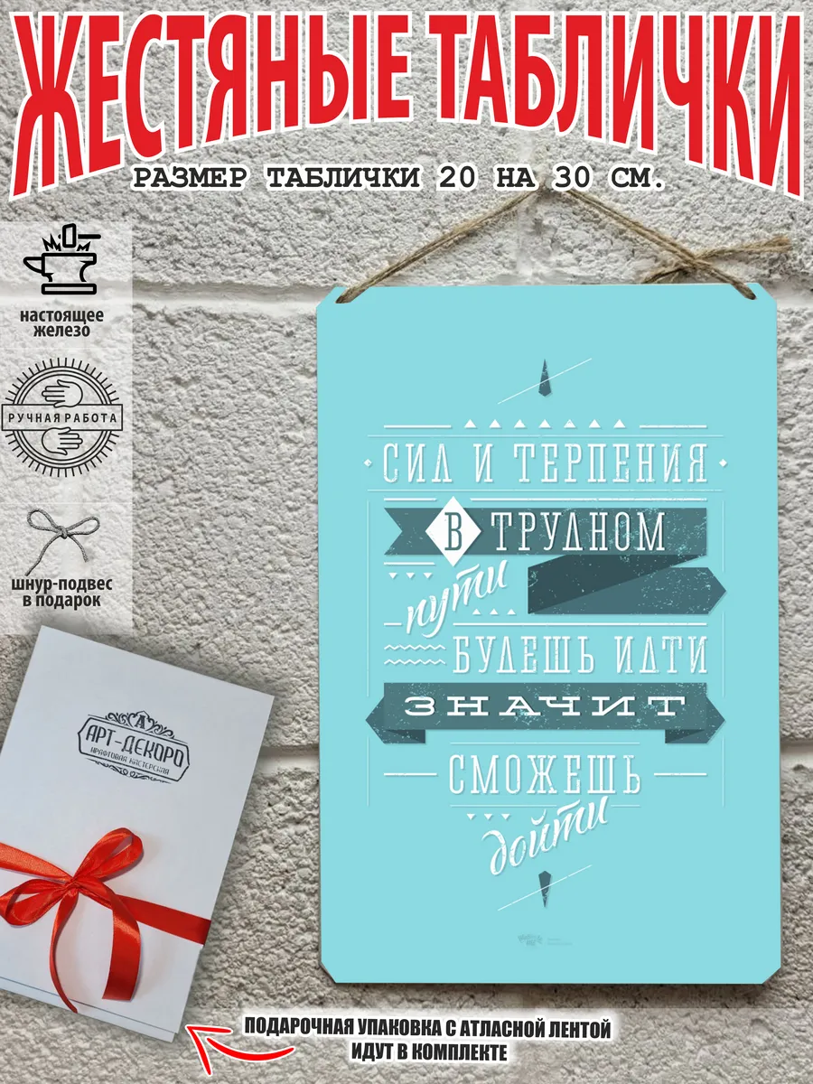 Обратите внимание! У нас все таблички идут сериями, можно создать отличную композицию в одном стиле. Кроме того, таблички это стильный и недорогой подарок по любому поводу. Прикольные штуки железная табличка картинки мотиваторы позитивные и демотиваторы из 100% металла от нашего бренда будет прекрасным украшением для квартиры, дома, офиса, бара или кафе. Мотивация это прикол, часть нашей жизни, картина мотиватор всегда улучшает настроение. Сочетая в себе эстетику и прочность, декоративная металлические мотивационные карточки являются непременным элементом декора как для внутренних помещений, так и для уличных зон. Выберите из нашего широкого ассортимента аксессуар, который подойдет именно вам. Жестяная табличка Арт-Декоро крепится на саморезы, шурупы или на специальный шнур из натурального джута который идет в комплекте с каждым заказом как бесплатный подарок, что позволяет разнообразить способы использования. Плакаты с приколами можно повесить на стену в гостиной, спальне, кухне или на улице, чтобы создать атмосферу, которая отражает индивидуальность. Таблички можно мыть, они не выцветают долгие годы. Картина открытки постер плакат стикеры наклейки приколы мотивация все это сочетается в наших изделиях. Мы гордимся тем, что каждое изделие изготовлено из настоящего металла, краска наносится прямо на железо. Это гарантирует ее долговечность и надежность. Красивая и изысканная отделка обеспечивает эффектный внешний вид и придает обстановке особое очарование. Подарите возможность добавить изюминку в интерьер и превратите пространство в уникальное, а также уютное место, которое будет отличаться от всех остальных. В нашем магазине Вы найдёте большой выбор декора интерьера и создадите превосходную обстановку.