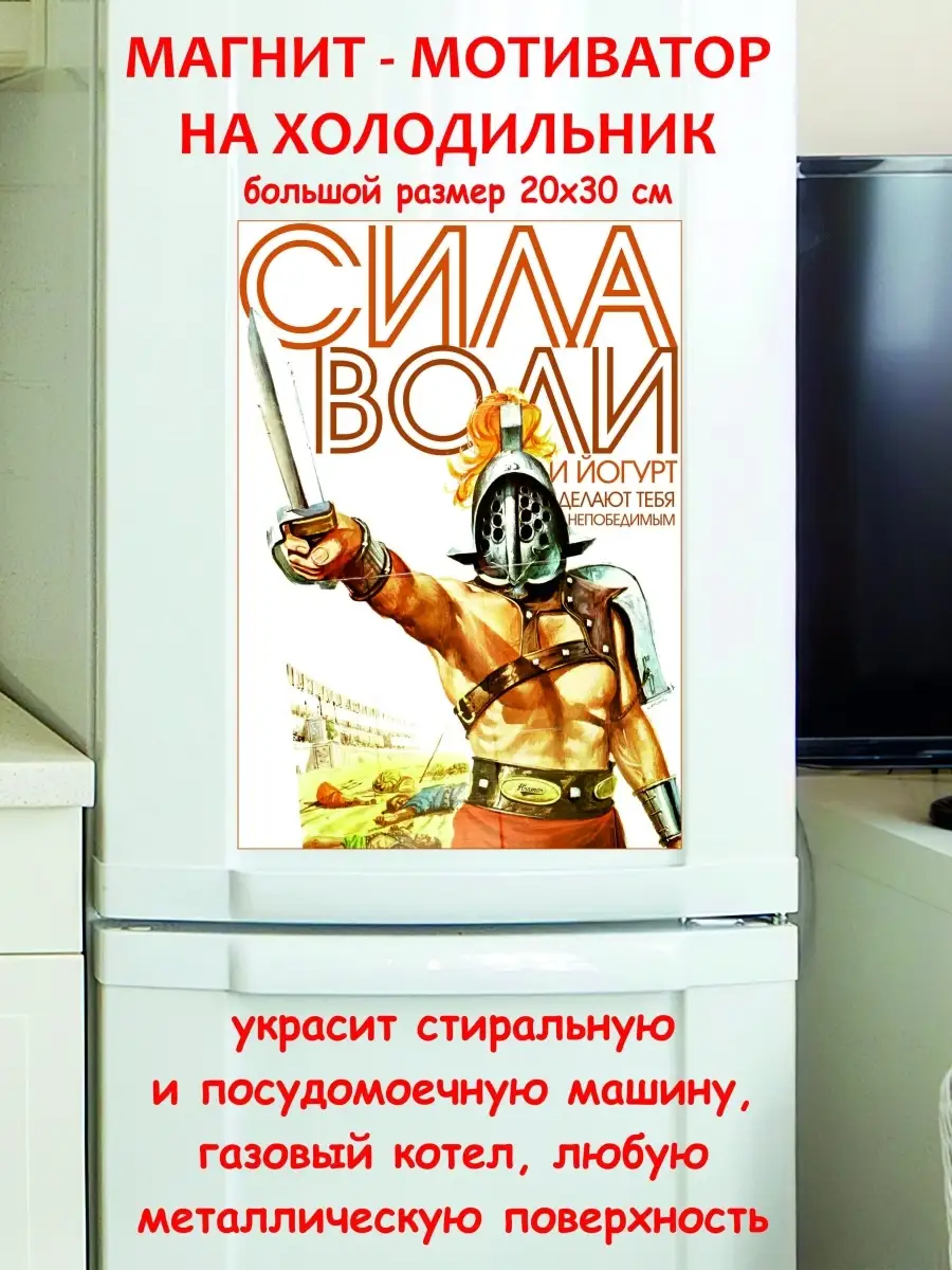 Этот забавный и мотивирующий магнит станет отличным дополнением к вашему холодильнику или любой другой металлической поверхности. Яркий дизайн с надписью «Сила воли и йогурт делают тебя непобедимым» поднимет настроение и добавит позитива в ваш день. Магнит выполнен из гибкого винила, что обеспечивает его долговечность и надежную фиксацию. Он станет оригинальным подарком для друзей, родственников или коллег, которые ценят юмор и стремятся к здоровому образу жизни.