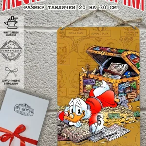 Скрудж Макдак символизирует богатство, достигнутое благодаря упорному труду, целеустремлённости и предпринимательской хватке. Также он является символом предприимчивости, темперамента и умения выживать в реалиях американской мультипликации и комиксов. Некоторые цитаты Скруджа Макдака про деньги: «Там, где вы видите старый сарай, я вижу дело с оборотом в миллион долларов!». «Деньги нельзя откладывать, их нужно вкладывать». «Чёрт побери! Сейчас хороших костюмов не шьют, 30–40 лет — и они рвутся». Несмотря на свои миллионы, Скрудж покупал качественную одежду и обувь, которую можно носить десятилетиями. «Деньги больше помогут, когда нет удачи, чем удача, когда нет денег». «Дорогая, я, конечно, хотел купить тебе бриллиантовое кольцо, но ювелирные были закрыты, поэтому я купил тебе йогурт». Так Скрудж хотел сделать приятное своей возлюбленной. «За маленький кусочек золота можно получить очень-очень много денег… Ха-ха! И для игры в шашки оно очень подходит». «Экономить, конечно, надо, но при чём тут мой шоколад?». «Я самая богатая утка на земле, потому что не трачу своих денег». Скрудж любил пользоваться бесплатными возможностями, которые экономили его деньги. Представляем вам стильные и эффектные жестяные таблички с изображением скруджа мак дака. Наши постеры деньги — жестяные таблички, выполнены из металла, который отличается высоким качеством и долговечностью. Размер 20×30 см позволяет легко вписать наши картины в любой интерьер, будь то кухня, гостиная, офис или кафе. Почему стоит выбрать наш постер для интерьера скрудж макдак? Яркие и насыщенные цвета не выгорают на солнце и делают ваше пространство выразительным и уникальным. Легкость в уходе: наши картины для интерьера, таблички на дверь и постеры на стену можно легко мыть. Они не боятся влаги, что позволяет использовать их как в помещениях, так и на улице. Удобные варианты крепления: табличка может быть установлена на саморезы, гвозди, кнопки, клейкую ленту, магниты или повешена на шнур из натурального джута, который идет в комплекте. Упаковка: каждая табличка аккуратно упакована в защитный пакет и дополнительно завернута в эко-картон, а также дополнительно в комплекте идет подарочная упаковка, атласная лента и открытка — что делает её отличным подарком на любой случай – от дня рождения до новоселья – готовый подарок. Мы гордимся тем, что предлагаем более 15 000 уникальных дизайнов, включая постеры на стену для интерьера, постер на заказ и прикольные металлические таблички, чтобы каждый мог найти что-то для себя. Наши постеры разделены на коллекции разных серий, что позволяет заказать несколько табличек в едином стиле и создать неповторимую композицию у вас дома, не упустите возможность сделать свой дом стильным – добавляйте товары в избранное, чтобы первыми узнавать о скидках и новинках! Создайте атмосферу уюта и стиля с нашими металлическими картинами и постерами для интерьера уже сегодня!