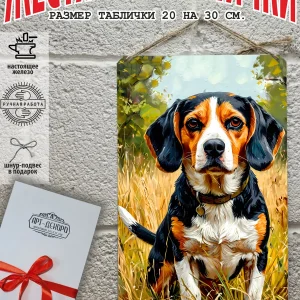 Изготовленная из 100% металла, табличка охотничья собака имеет прямоугольную форму и полуматовую поверхность. Она не только прочная, но и стильная, благодаря насыщенной цветовой гамме и качественной печати.
