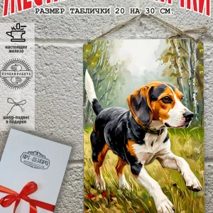 Изготовленная из 100% металла, табличка охотничья собака имеет прямоугольную форму и полуматовую поверхность. Она не только прочная, но и стильная, благодаря насыщенной цветовой гамме и качественной печати.