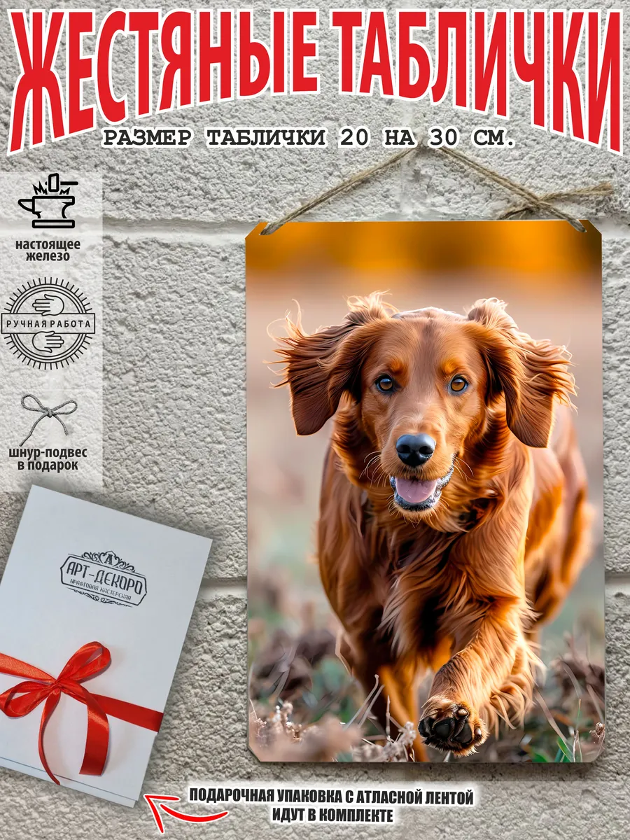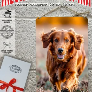 Изготовленная из 100% металла, табличка охотничья собака имеет прямоугольную форму и полуматовую поверхность. Она не только прочная, но и стильная, благодаря насыщенной цветовой гамме и качественной печати.