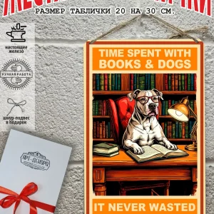 Крутые собаки табличка металлическая «время, проведенное с книгами и собаками, никогда не пропадало даром» — это не просто декор, это произведение искусства, которое станет ярким акцентом в вашем интерьере.