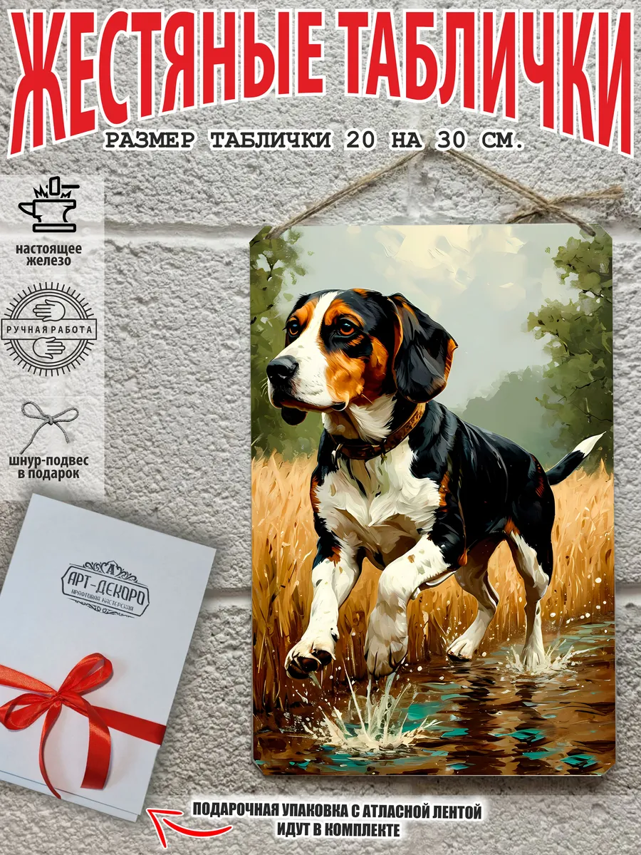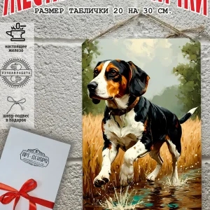 Изготовленная из 100% металла, табличка охотничья собака имеет прямоугольную форму и полуматовую поверхность. Она не только прочная, но и стильная, благодаря насыщенной цветовой гамме и качественной печати.