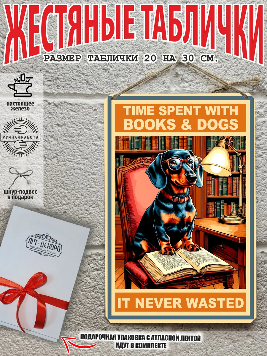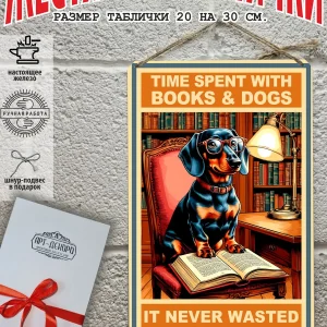 Крутые собаки табличка металлическая «время, проведенное с книгами и собаками, никогда не пропадало даром» — это не просто декор, это произведение искусства, которое станет ярким акцентом в вашем интерьере.