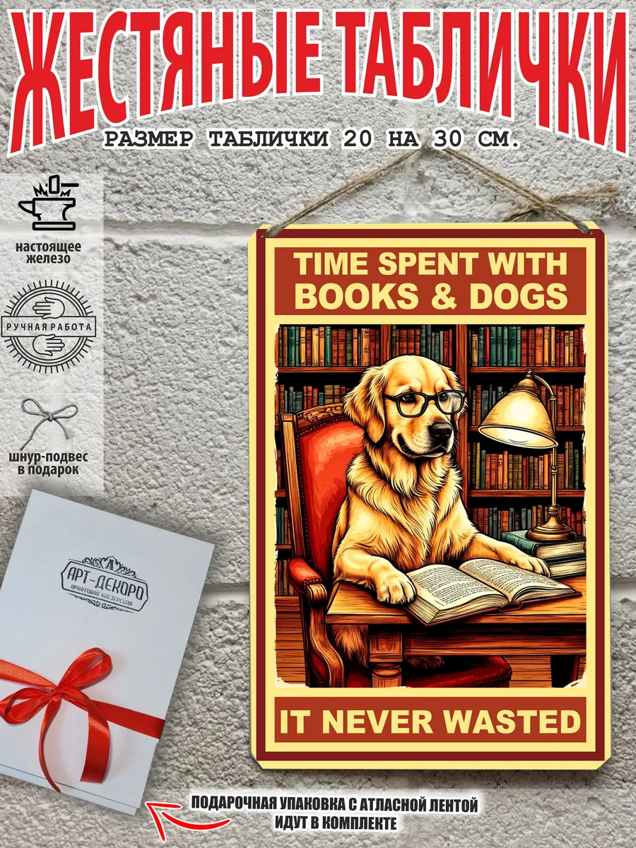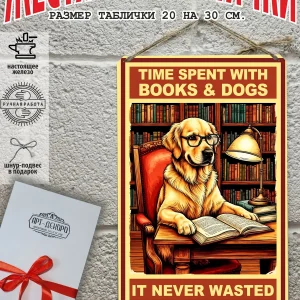 Крутые собаки табличка металлическая «время, проведенное с книгами и собаками, никогда не пропадало даром» — это не просто декор, это произведение искусства, которое станет ярким акцентом в вашем интерьере.