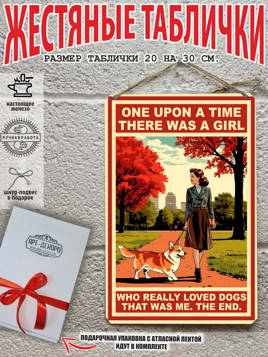 Крутые собаки табличка металлическая «жила-была девушка, которая по-настоящему любила собак, это была я. конец.» — это не просто декор, это произведение искусства, которое станет ярким акцентом в вашем интерьере.