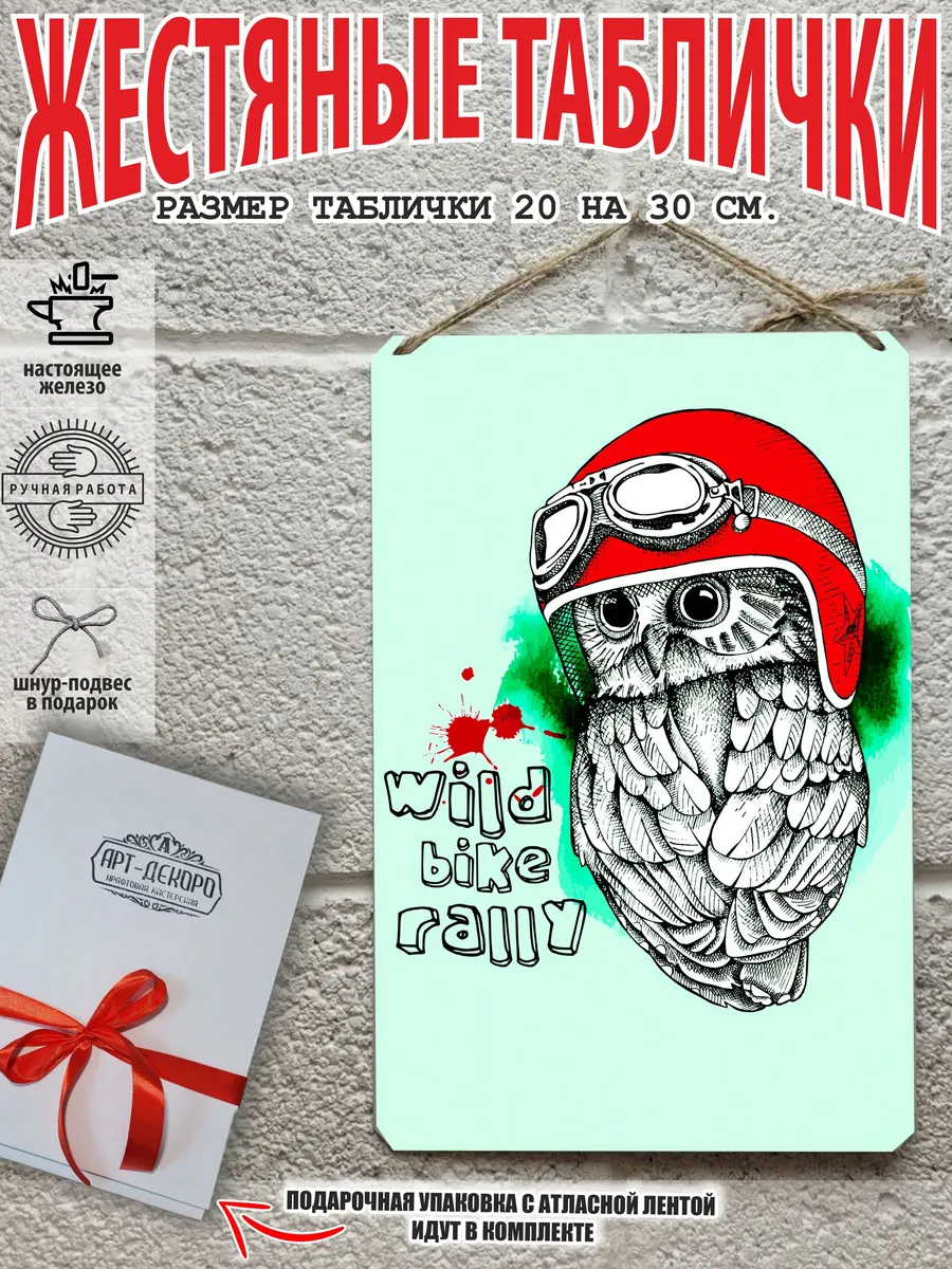 Представляем вам стильные и эффектные жестяные таблички с изображением животных. Наши постеры wild bike raaly — жестяные таблички, выполнены из металла, который отличается высоким качеством и долговечностью. Размер 20×30 см позволяет легко вписать наши картины в любой интерьер, будь то кухня, гостиная, офис или кафе. Почему стоит выбрать наш постер для интерьера? Яркие и насыщенные цвета не выгорают на солнце и делают ваше пространство выразительным и уникальным. Легкость в уходе: наши картины собаки арт для интерьера, таблички на дверь и постеры на стену лама арт можно легко мыть. Они не боятся влаги, что позволяет использовать их как в помещениях – для детской комнаты, так и на улице. Удобные варианты крепления: табличка может быть установлена на саморезы, гвозди, кнопки, клейкую ленту, магниты или повешена на шнур из натурального джута, который идет в комплекте. Упаковка: каждая табличка иллюстрация граффити стрит арт аккуратно упакована в защитный пакет и дополнительно завернута в эко-картон, а также дополнительно в комплекте идет подарочная упаковка, атласная лента и открытка — что делает её отличным подарком на любой случай – от дня рождения до новоселья – готовый подарок. Мы гордимся тем, что предлагаем более 15 000 уникальных дизайнов, включая постеры на стену для интерьера, постер на заказ и прикольные металлические таблички, чтобы каждый мог найти что-то для себя. Наши постеры разделены на коллекции разных серий, что позволяет заказать несколько табличек в едином стиле и создать неповторимую композицию у вас дома, не упустите возможность сделать свой дом стильным – добавляйте товары в избранное, чтобы первыми узнавать о скидках и новинках! Создайте атмосферу уюта и стиля с нашими металлическими картинами и постерами для интерьера уже сегодня!