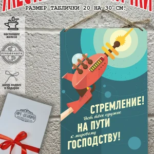 Обратите внимание! У нас все таблички идут сериями, можно создать отличную композицию в одном стиле. Кроме того, таблички это стильный и недорогой подарок по любому поводу. Прикольные штуки железная табличка картинки мотиваторы позитивные и демотиваторы из 100% металла от нашего бренда будет прекрасным украшением для квартиры, дома, офиса, бара или кафе. Мотивация это прикол, часть нашей жизни, картина мотиватор всегда улучшает настроение. Сочетая в себе эстетику и прочность, декоративная металлические мотивационные карточки являются непременным элементом декора как для внутренних помещений, так и для уличных зон. Выберите из нашего широкого ассортимента аксессуар, который подойдет именно вам. Жестяная табличка Арт-Декоро крепится на саморезы, шурупы или на специальный шнур из натурального джута который идет в комплекте с каждым заказом как бесплатный подарок, что позволяет разнообразить способы использования. Плакаты с приколами можно повесить на стену в гостиной, спальне, кухне или на улице, чтобы создать атмосферу, которая отражает индивидуальность. Таблички можно мыть, они не выцветают долгие годы. Картина открытки постер плакат стикеры наклейки приколы мотивация все это сочетается в наших изделиях. Мы гордимся тем, что каждое изделие изготовлено из настоящего металла, краска наносится прямо на железо. Это гарантирует ее долговечность и надежность. Красивая и изысканная отделка обеспечивает эффектный внешний вид и придает обстановке особое очарование. Подарите возможность добавить изюминку в интерьер и превратите пространство в уникальное, а также уютное место, которое будет отличаться от всех остальных. В нашем магазине Вы найдёте большой выбор декора интерьера и создадите превосходную обстановку.