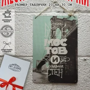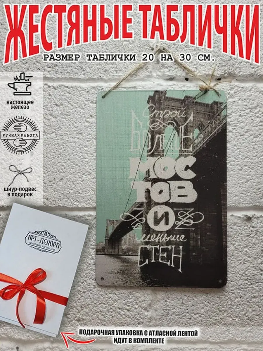 Обратите внимание! У нас все таблички идут сериями, можно создать отличную композицию в одном стиле. Кроме того, таблички это стильный и недорогой подарок по любому поводу. Прикольные штуки железная табличка картинки мотиваторы позитивные и демотиваторы из 100% металла от нашего бренда будет прекрасным украшением для квартиры, дома, офиса, бара или кафе. Мотивация это прикол, часть нашей жизни, картина мотиватор всегда улучшает настроение. Сочетая в себе эстетику и прочность, декоративная металлические мотивационные карточки являются непременным элементом декора как для внутренних помещений, так и для уличных зон. Выберите из нашего широкого ассортимента аксессуар, который подойдет именно вам. Жестяная табличка Арт-Декоро крепится на саморезы, шурупы или на специальный шнур из натурального джута который идет в комплекте с каждым заказом как бесплатный подарок, что позволяет разнообразить способы использования. Плакаты с приколами можно повесить на стену в гостиной, спальне, кухне или на улице, чтобы создать атмосферу, которая отражает индивидуальность. Таблички можно мыть, они не выцветают долгие годы. Картина открытки постер плакат стикеры наклейки приколы мотивация все это сочетается в наших изделиях. Мы гордимся тем, что каждое изделие изготовлено из настоящего металла, краска наносится прямо на железо. Это гарантирует ее долговечность и надежность. Красивая и изысканная отделка обеспечивает эффектный внешний вид и придает обстановке особое очарование. Подарите возможность добавить изюминку в интерьер и превратите пространство в уникальное, а также уютное место, которое будет отличаться от всех остальных. В нашем магазине Вы найдёте большой выбор декора интерьера и создадите превосходную обстановку.