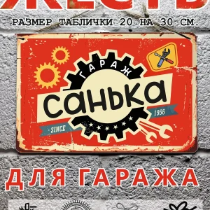Табличка для гаража с именем Санек, металл, 20х30 см.