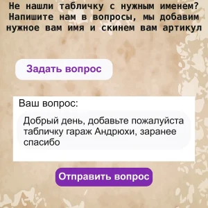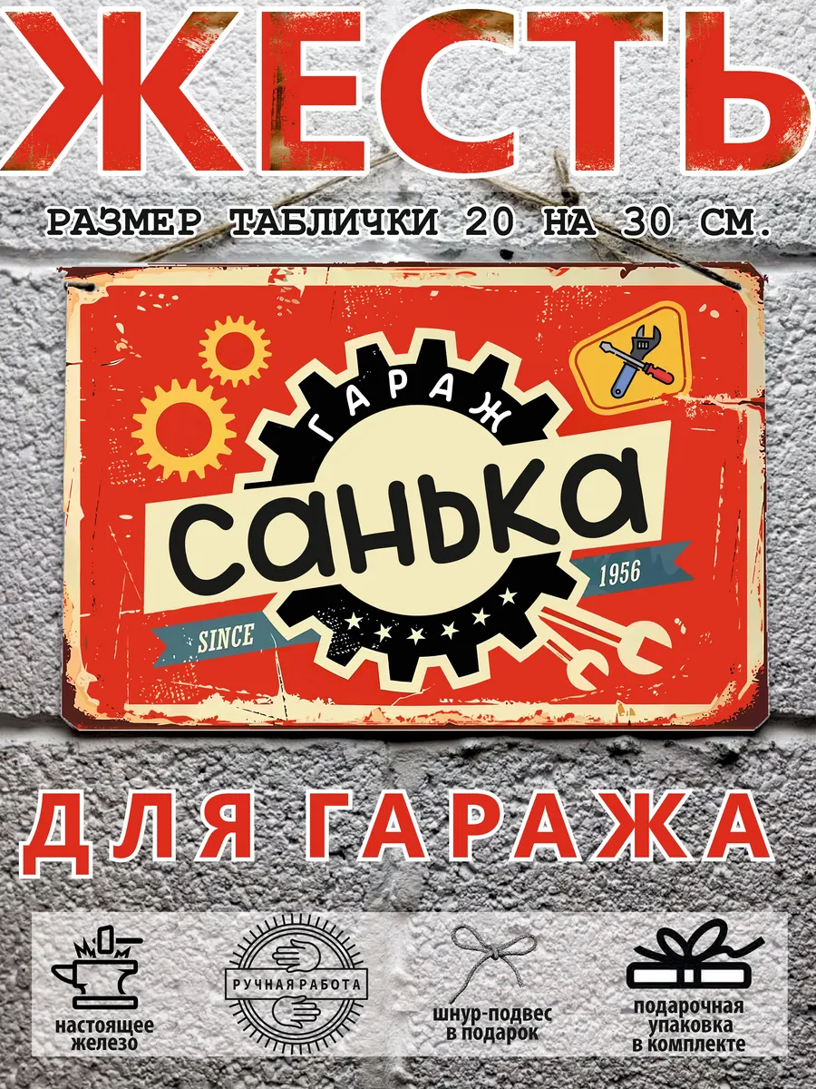 комплектация: именная табличка для гаража, шнур-подвес из натурального джута, подарочная упаковка, атласная лента, открытка, защитная упаковка от царапин, транспортировочная упаковка