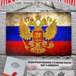 Декоративная табличка «Флаг и герб России» станет прекрасным украшением для дома, офиса или кабинета. Изготовленная из прочного металла, она имеет прямоугольную форму и оснащена шнуром-подвесом для удобного размещения на стене. Табличка30 на 20 см. поставляется в подарочной упаковке, что делает ее идеальным презентом для патриотов и любителей отечественной символики.