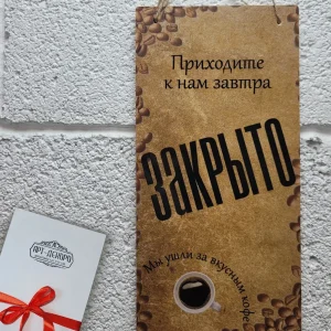 Для размещения вывески нужно только продеть шнурок в заранее предусмотренные отверстия, в комплекте силиконовая присоска диаметром 3,5 см для крепления на стекло. Шнур-подвес из натурального джута является стильным дополнением к табличке.