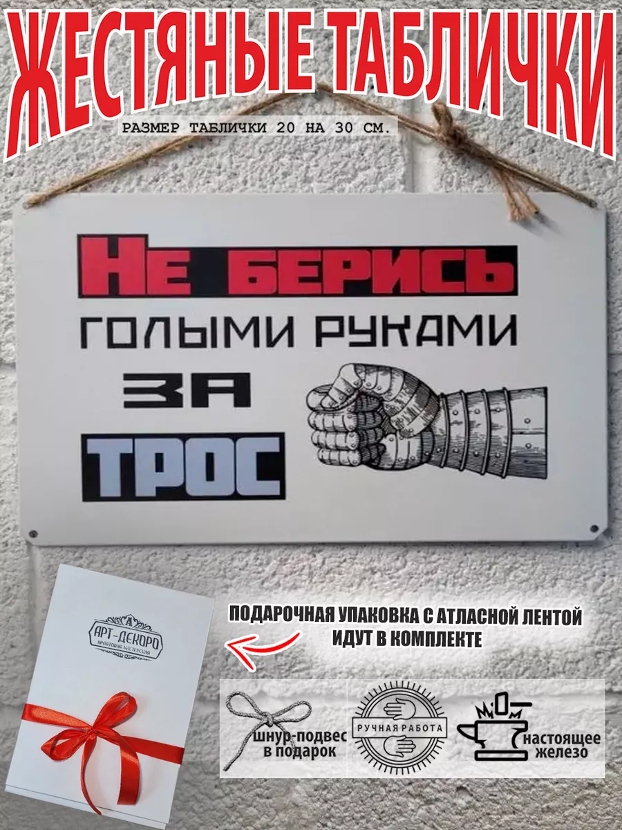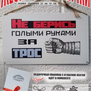 Табличка «Не берись голыми руками за трос» — это эффективный способ напомнить сотрудникам о важности соблюдения правил техники безопасности. Изготовленная из прочного 100% металла, табличка прослужит долгое время, сохраняя свой презентабельный вид. Размер 30 на 20 см. Шнур-подвес из натурального джута, который идет в подарок к каждой табличке, позволяет легко разместить табличку на стене, заборе или двери, обеспечивая ее заметность. А так же по углам таблички есть отверстия 5 мм, что позволяет разнообразить варианты крепления. Яркий дизайн и четкий текст привлекут внимание и станут постоянным напоминанием о необходимости соблюдать меры предосторожности. Прочная табличка для производственных помещений. Таблички для производства, цеха.