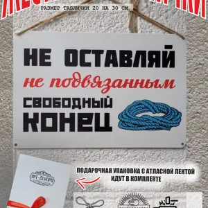 Табличка «не оставляй не подвязанным свободный конец» — это эффективный способ напомнить сотрудникам о важности соблюдения правил техники безопасности. Изготовленная из прочного 100% металла, табличка прослужит долгое время, сохраняя свой презентабельный вид. Размер 30 на 20 см. Шнур-подвес из натурального джута, который идет в подарок к каждой табличке, позволяет легко разместить табличку на стене, заборе или двери, обеспечивая ее заметность. А так же по углам таблички есть отверстия 5 мм, что позволяет разнообразить варианты крепления. Яркий дизайн и четкий текст привлекут внимание и станут постоянным напоминанием о необходимости соблюдать меры предосторожности. Прочная табличка для производственных помещений. Таблички для производства, цеха.