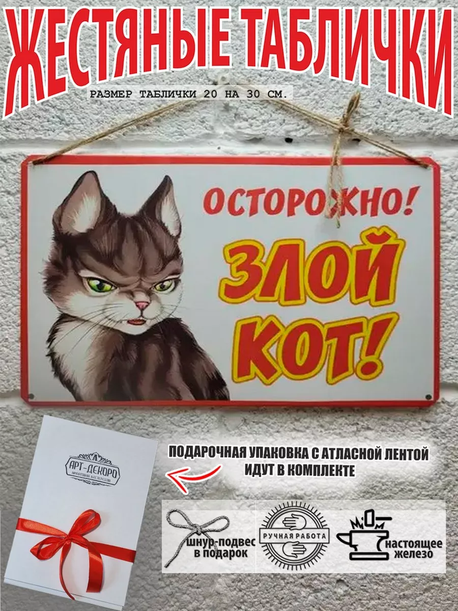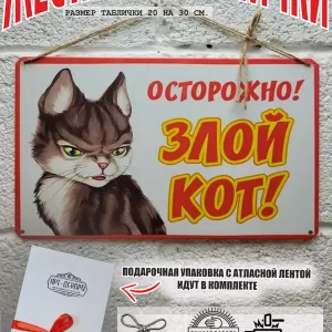 Табличка: "Осторожно! Злой кот!" - металл, 20 на 30 см.