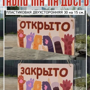 Информационная табличка вывеска уникального авторского дизайна «Открыто-Закрыто» — незаменимый помощник для любого бизнеса. Яркая и заметная, она четко информирует посетителей о режиме работы вашего учреждения. Изготовленная из прочного пластика, табличка прослужит долго, сохраняя свой презентабельный вид. Благодаря шнуру-подвесу и присоске, ее легко закрепить на двери, окне или любой другой подходящей поверхности.