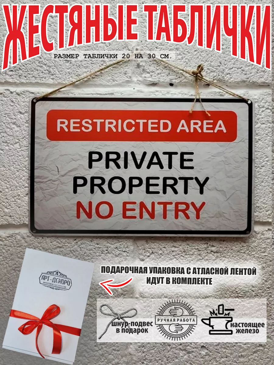 Табличка: "Private property" - металл, 20 на 30 см.
