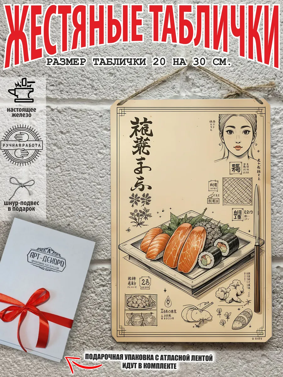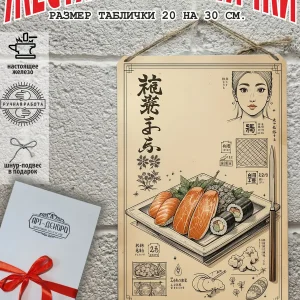 Тематическая интерьерная картина Суши Роллы выполнена из 100% металла, с классическим размером 20 на 30 см придаст вашей кухни или вашему ресторану особый смысл.