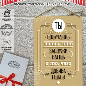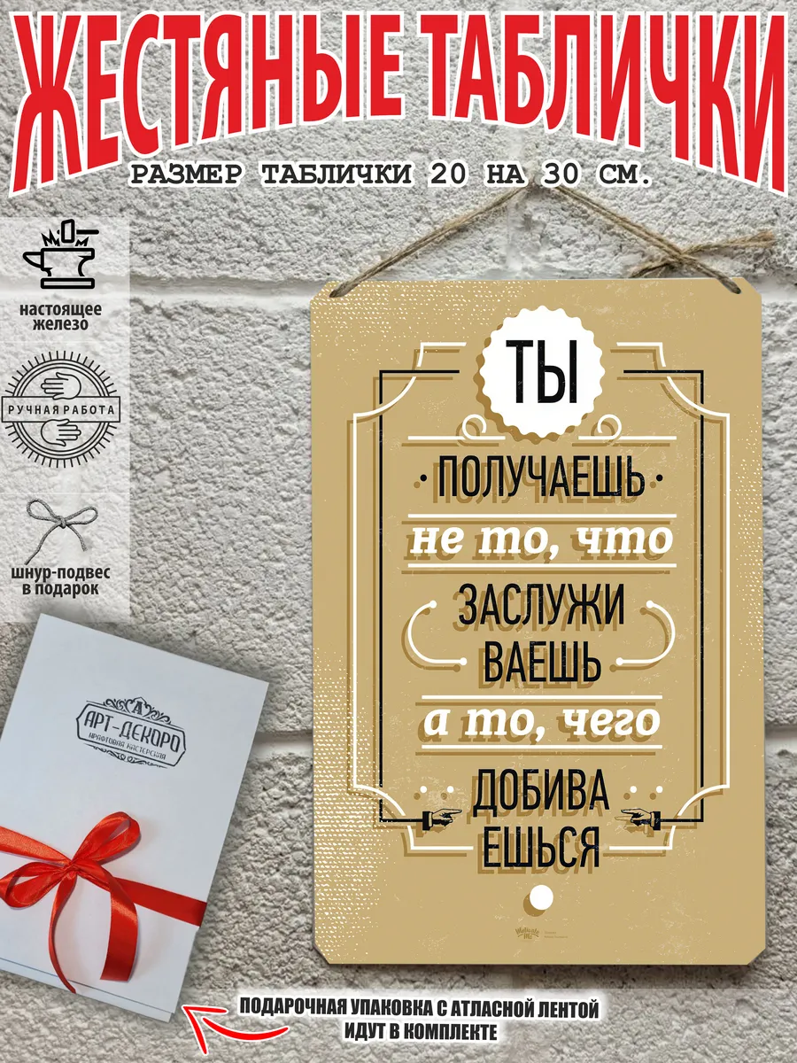 Обратите внимание! У нас все таблички идут сериями, можно создать отличную композицию в одном стиле. Кроме того, таблички это стильный и недорогой подарок по любому поводу. Прикольные штуки железная табличка картинки мотиваторы позитивные и демотиваторы из 100% металла от нашего бренда будет прекрасным украшением для квартиры, дома, офиса, бара или кафе. Мотивация это прикол, часть нашей жизни, картина мотиватор всегда улучшает настроение. Сочетая в себе эстетику и прочность, декоративная металлические мотивационные карточки являются непременным элементом декора как для внутренних помещений, так и для уличных зон. Выберите из нашего широкого ассортимента аксессуар, который подойдет именно вам. Жестяная табличка Арт-Декоро крепится на саморезы, шурупы или на специальный шнур из натурального джута который идет в комплекте с каждым заказом как бесплатный подарок, что позволяет разнообразить способы использования. Плакаты с приколами можно повесить на стену в гостиной, спальне, кухне или на улице, чтобы создать атмосферу, которая отражает индивидуальность. Таблички можно мыть, они не выцветают долгие годы. Картина открытки постер плакат стикеры наклейки приколы мотивация все это сочетается в наших изделиях. Мы гордимся тем, что каждое изделие изготовлено из настоящего металла, краска наносится прямо на железо. Это гарантирует ее долговечность и надежность. Красивая и изысканная отделка обеспечивает эффектный внешний вид и придает обстановке особое очарование. Подарите возможность добавить изюминку в интерьер и превратите пространство в уникальное, а также уютное место, которое будет отличаться от всех остальных. В нашем магазине Вы найдёте большой выбор декора интерьера и создадите превосходную обстановку.