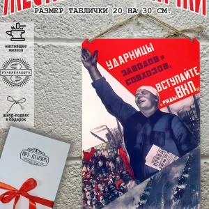 СССР Железная жестяная табличка ручной работы, выполнена из 100% металла имеет классический размер 20*30 см. Края загнуты на 5 мм внутрь. Изображение наносится прямо на металл. Яркие насыщенные и объемные цвета. Можно использовать как в помещении, так и на улице она не боится влаги. Варианты крепления : на саморезы-шурупы, по углам имеются отверстия или на шнур-подвес из натурального джута, который идёт в подарок. Сделано в России. Упакована в прозрачный открывающийся пакет для защиты от царапин при транспортировке. Внешняя дополнительная эко-упаковка из картона, подходит для подарка. Плакат советский — отличный подарок и стильный декор любого интерьера. Сувенир советская агитация — хороший презент. Картинка советская пропаганда — это отличный декор любого интерьера. Табличка на стену портрет Сталин Ленин — украшение кухни, дома, офиса, кафе, кофейни. Картина советский союз этот ретро стиль который всегда в моде. Подарок начальнику, другу, винтажный ретро советский постер на жести. Декоративная жесть это картина для квартиры и дачи. Вся коллекция табличек с тематикой советские плакаты в нашем профиле в бренде СССР. Так же в нашем магазине более 15 000 видов табличек из разный коллекций, каждый найдет себе по душе! Добавляйте товар в избранное, что бы первыми узнавать о скидках и новинках