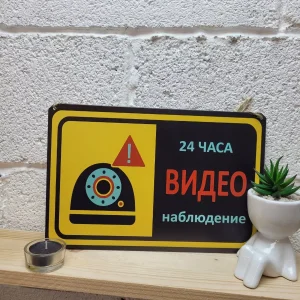 Изображение с надписью и картинки видеокамеры матовое, наносится прямо на железо.Также изображение на данной табличке защищено от выгорания и царапин, что гарантирует сохранение яркости и четкости изображения на протяжении длительного времени.