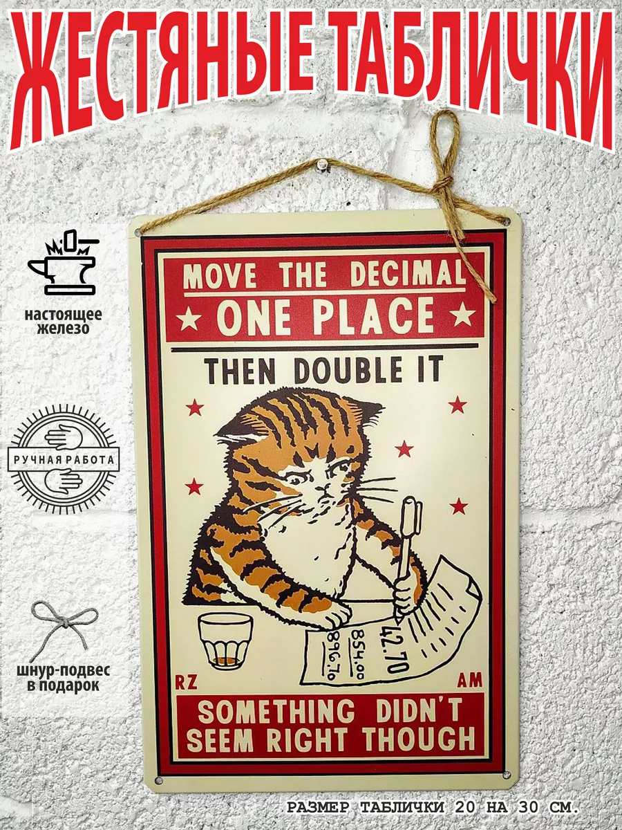 Передвиньте десятичную дробь на один разряд затем удвоите ее, однако что-то показалось мне неправильным- текст на картинке. Представляем вам стильные и эффектные жестяные таблички и картины, в том числе удивительные изображения котов на картинах художников. Все наши постеры, включая жестяные таблички, выполнены из высококачественного металла, обеспечивающего долговечность и устойчивость к солнечному свету. Размер 20×30 см позволяет легко интегрировать их в любой интерьер – будь то кухня, гостиная, офис или кафе.