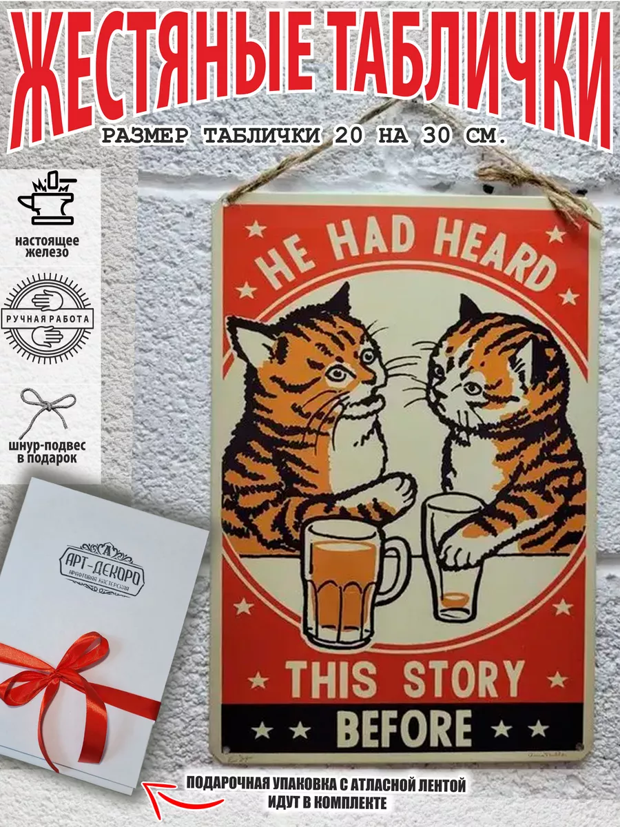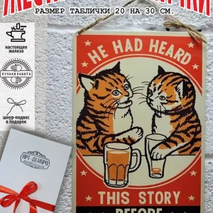 Слышал? Эта история «до» — текст на картинке. Представляем вам стильные и эффектные жестяные таблички и картины, в том числе удивительные изображения котов на картинах художников. Все наши постеры, включая жестяные таблички, выполнены из высококачественного металла, обеспечивающего долговечность и устойчивость к солнечному свету. Размер 20×30 см позволяет легко интегрировать их в любой интерьер – будь то кухня, гостиная, офис или кафе.