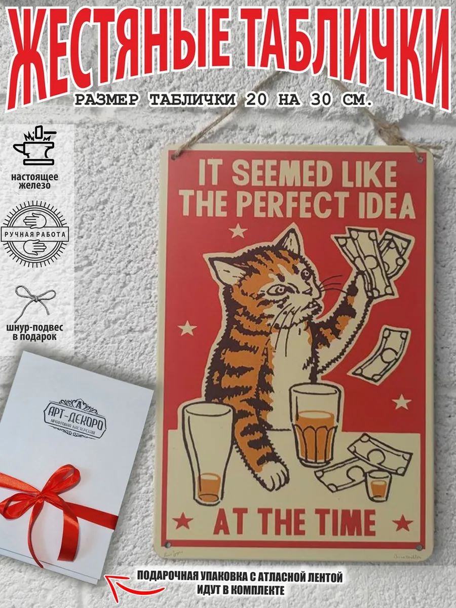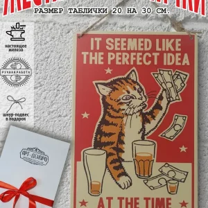 Это казалось идеальной идеей, в то время — текст на картинке. Представляем вам стильные и эффектные жестяные таблички и картины, в том числе удивительные изображения котов на картинах художников. Все наши постеры, включая жестяные таблички, выполнены из высококачественного металла, обеспечивающего долговечность и устойчивость к солнечному свету. Размер 20×30 см позволяет легко интегрировать их в любой интерьер – будь то кухня, гостиная, офис или кафе.