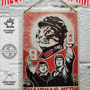 Председатель мяу — текст на картинке. Представляем вам стильные и эффектные жестяные таблички и картины, в том числе удивительные изображения котов на картинах художников. Все наши постеры, включая жестяные таблички, выполнены из высококачественного металла, обеспечивающего долговечность и устойчивость к солнечному свету. Размер 20×30 см позволяет легко интегрировать их в любой интерьер – будь то кухня, гостиная, офис или кафе.
